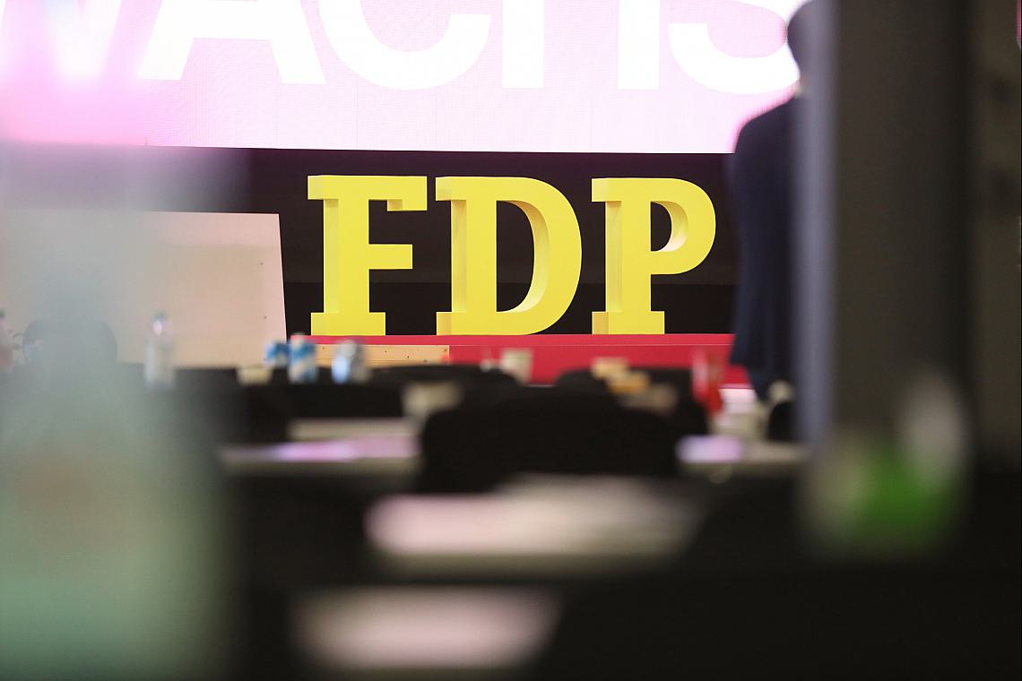 Foto: FDP-Logo auf Parteitag (Archiv), via dts Nachrichtenagentur