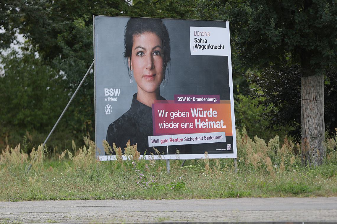 Foto: BSW-Wahlplakat mit Sahra Wagenknecht zur Landtagswahl in Brandenburg (Archiv), via dts Nachrichtenagentur