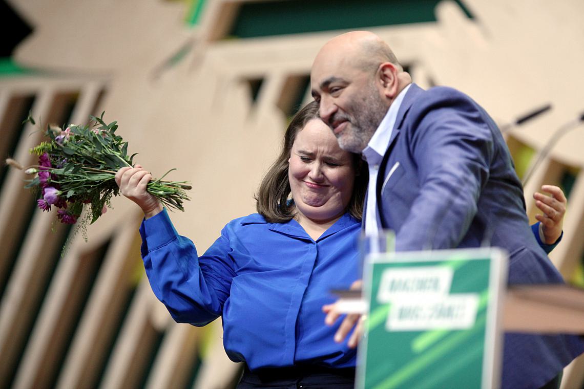 Foto: Ricarda Lang und Omid Nouripour bei ihrer Wiederwahl auf der 49. Bundesdelegiertenkonferenz (Archiv), via dts Nachrichtenagentur