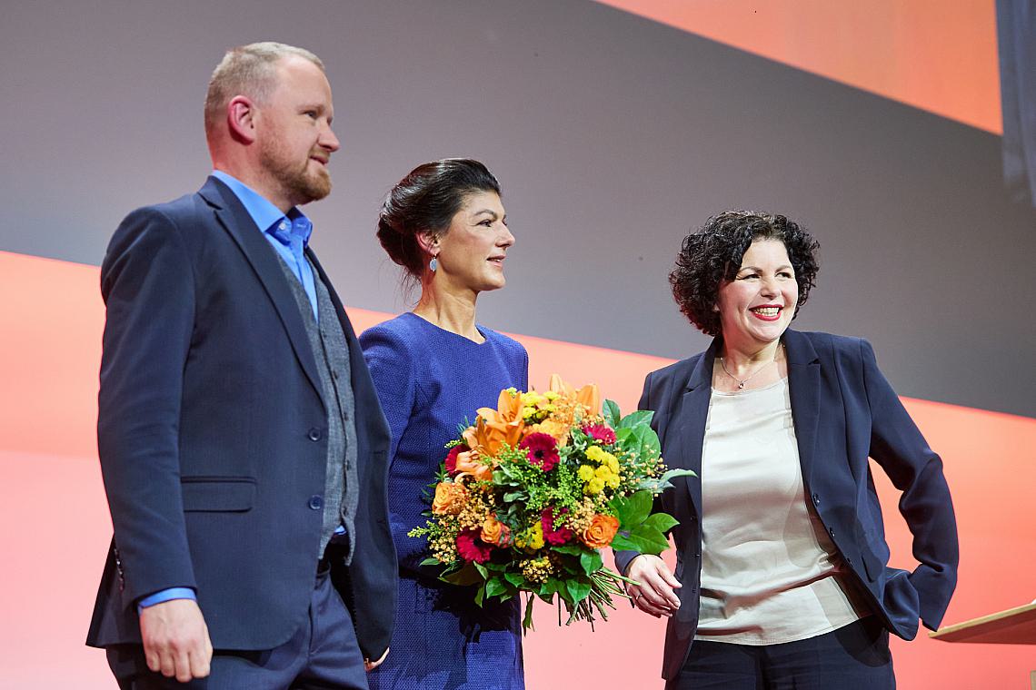 Foto: Christian Leye, Sahra Wagenknecht, Amira Mohamed Ali am 12.01.2025, via dts Nachrichtenagentur