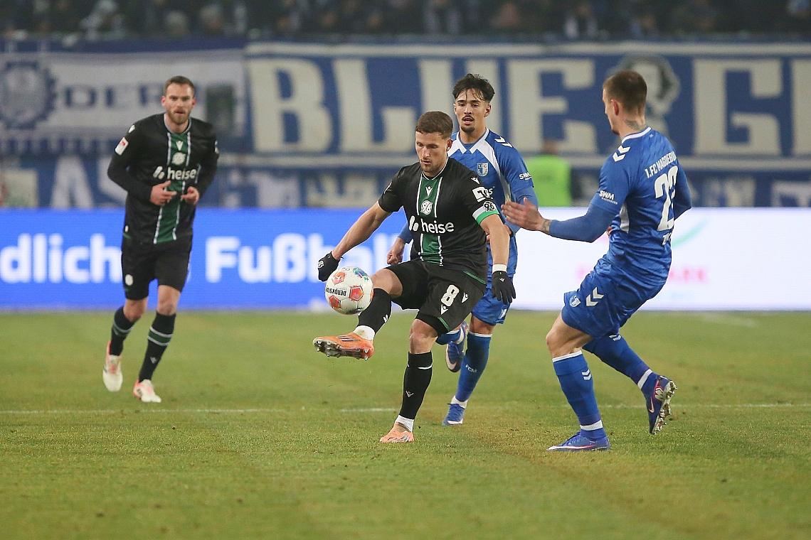 In Magdeburg erwischte Hannover 96 den besseren Start und belohnte sich in der 38. Minute, als Daisuke Yokota aus kurzer Distanz zum 1:0 für die Gäste einschob. Nach der Pause kam der FCM entschlossener aus der Kabine und glich in der 53. Minute aus: Baris Atik setzte sich nach Vorarbeit von Dariusz Stalmach durch und beförderte den Ball aus rund 20 Metern ins rechte Eck. Die Antwort der Niedersachsen ließ jedoch nicht lange auf sich warten. Nur drei Minuten später stellte Enzo Leopold den alten Abstand wieder her, als er nach einem Doppelpass mit Elias Saad aus 16 Metern flach zum 2:1 traf. In der Folge drängte Magdeburg auf den erneuten Ausgleich und traf unter anderem durch Marcus Mathisen noch die Latte, Hannover verteidigte den Vorsprung jedoch über die Zeit und nahm alle drei Punkte mit.