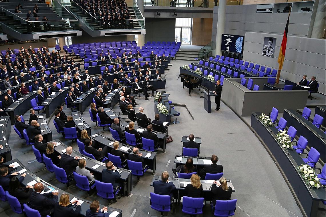 Ein Großteil der AfD-Fraktion ist dem Trauerstaatsakt für Rita Süssmuth im Bundestag am Dienstag ferngeblieben. Zwar war die erste Reihe unter anderem mit den Partei- und Fraktionschefs Alice Weidel und Tino Chrupalla besetzt, aber dahinter lichteten sich die Reihen dann schnell.