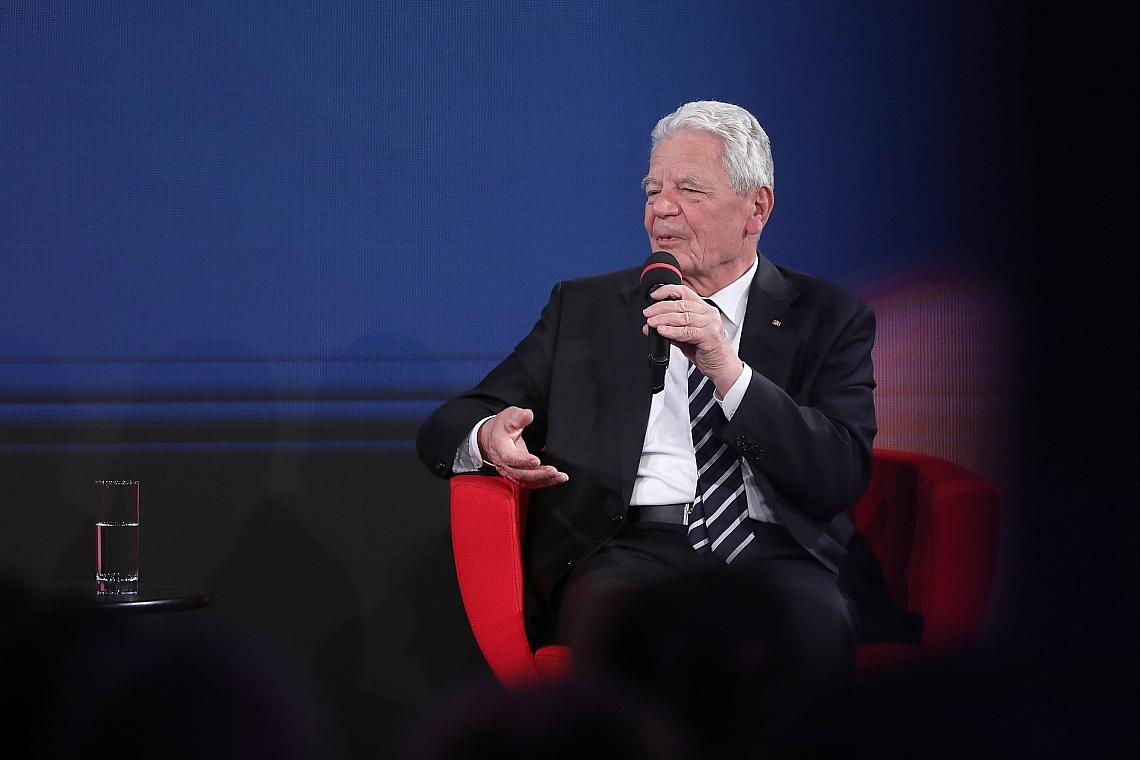 Aber auch im Westen gebe es Wahlkreise mit hoher AfD-Wählerschaft, und Zuspruch für populistische Kräfte ebenso in der Schweiz oder Skandinavien. Seine Erklärung: „Der Populismus nährt sich auch aus dem Misserfolg der gewählten Politiker“, sagte Gauck. Später fügte er hinzu: „Wenn du längere Zeit deine demokratisch gewählte Regierung als zu unentschlossen erlebst – das ist ein Punkt.“ Ebenfalls als ursächlich nannte er die Intensität des gesellschaftlichen Wandels und Krisen.
