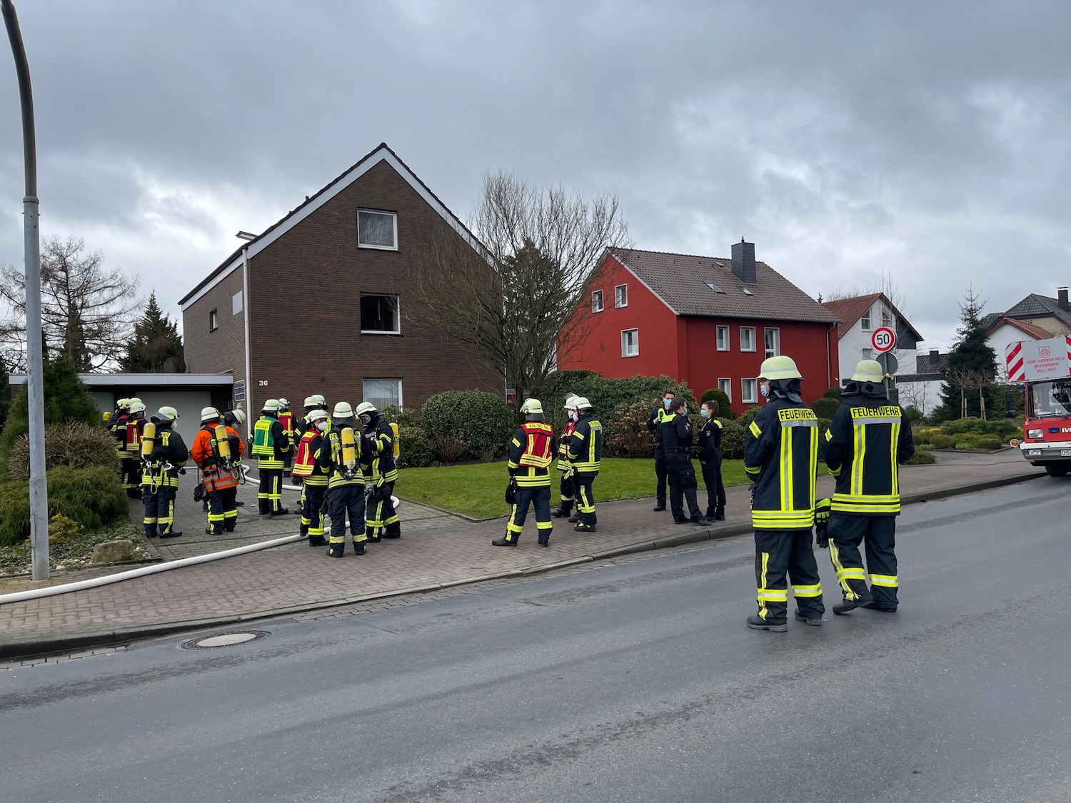 Ein Bewohner des Einfamilienhauses hatte gegen 09:30 Uhr versehentlich die im Keller befindliche Sauna eingeschaltet, auf deren Ofen zu diesem Zeitpunkt Gegenstände gelagert waren. Diese Gegenstände gerieten in der Folge durch den erhitzten Ofen in Brand, was schnell zu einer enormen Rauchentwicklung in dem Gebäude führte.