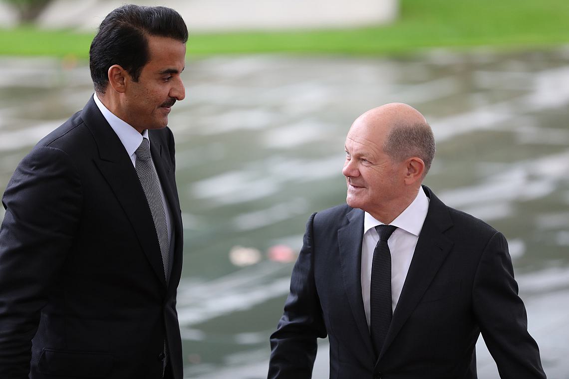 Foto: Tamim bin Hamad Al Thani und Olaf Scholz am 12.10.2023, über dts Nachrichtenagentur