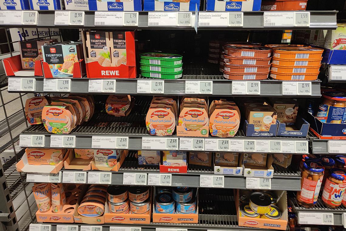Foto: Supermarktregal mit Thunfisch-Dosen (Archiv), via dts Nachrichtenagentur